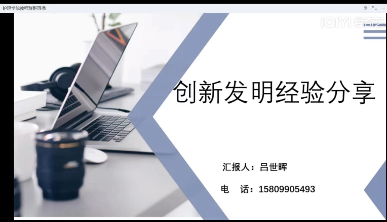 为了充实和完善护理专业教师教学创新团队力量,促进教师创新教学水平和学生的创新素养。护理学院于12月10日上午邀请我校毕业生、克拉玛依市中心医院的吕世晖同学进行了创新发明经验分享专题讲座,护理学院全体教师及2021级全体学生参加了此次培训。