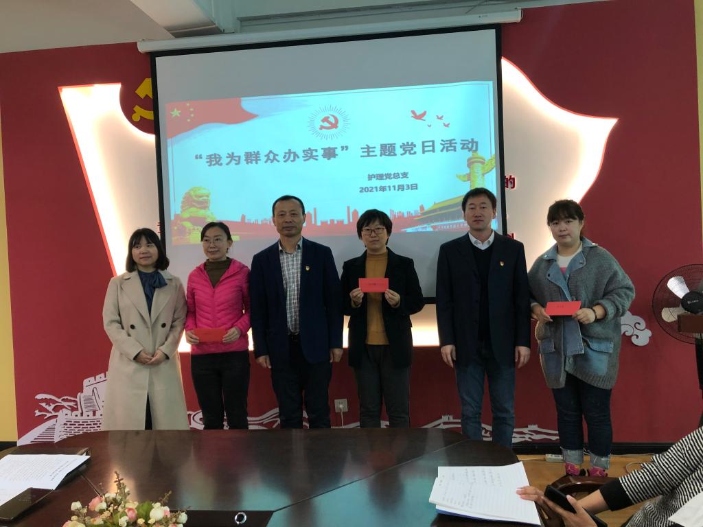 为进一步推进“我为群众办实事”实践活动,切实帮助经济困难学生解决实际问题,使学生感受到学校的关爱,11月3日,护理党总支开展“我为群众办实事”主题党日活动,对意外受伤的经济困难学生开展帮扶。校党委副书记陈贵锋、护理学院负责人宋宇、教学负责人何凤云及全体党员参加了活动,活动由护理党总支副书记任佳伟主持。